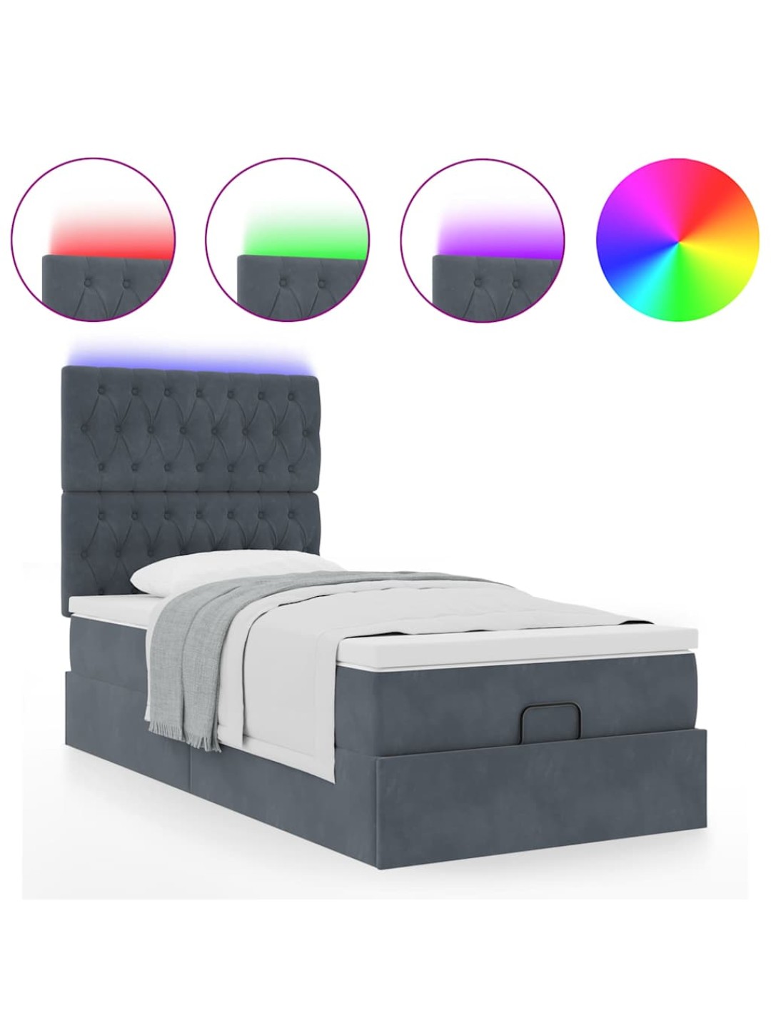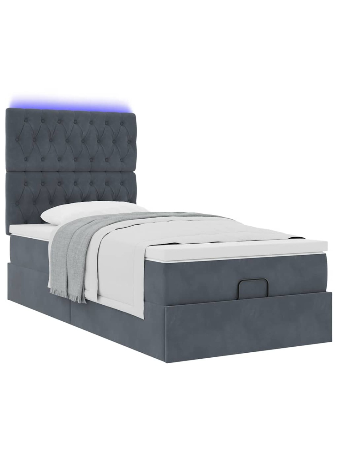 Ottomani voodiraam madratsitega, tumehall, 80x200 cm, samet