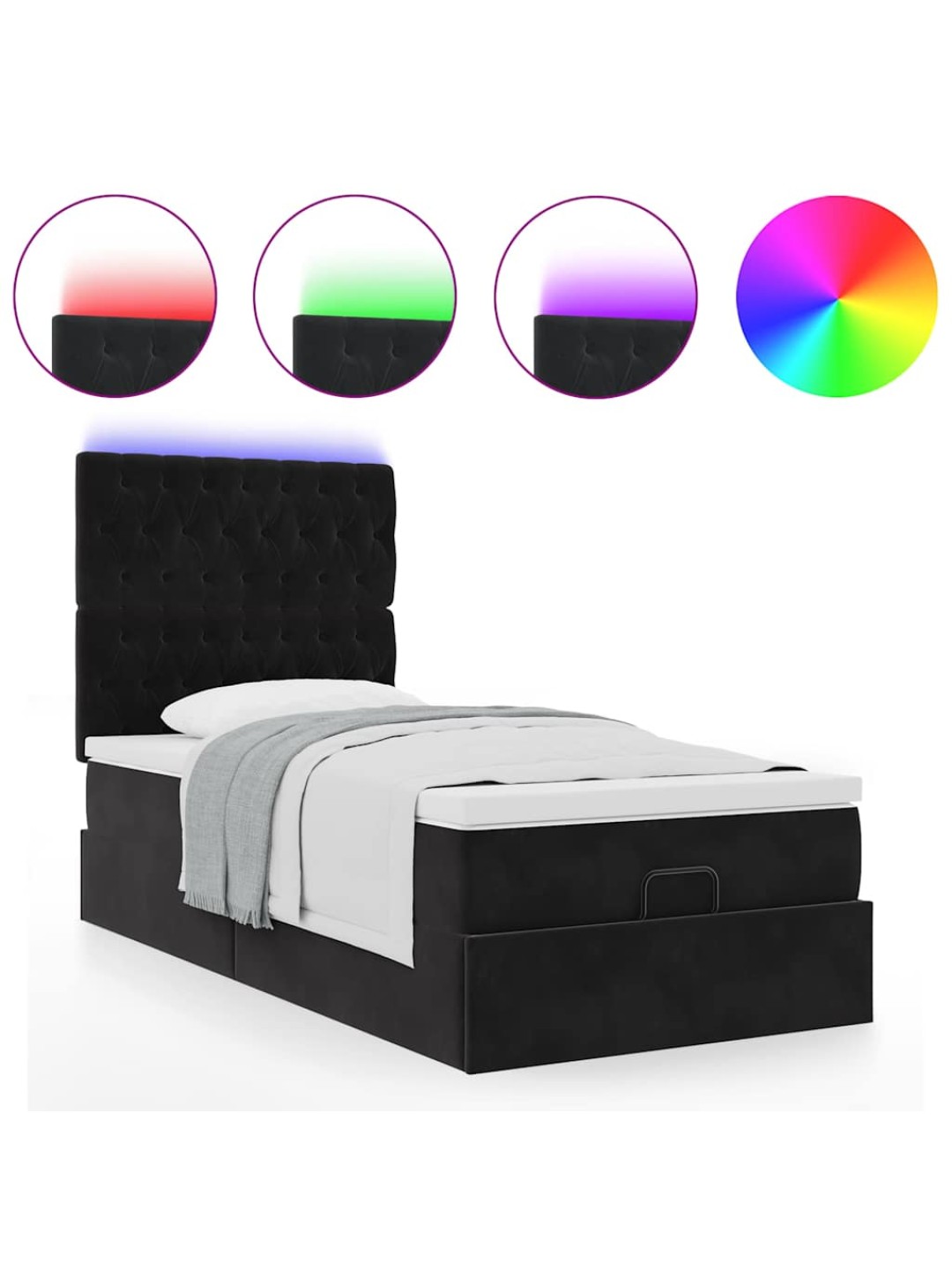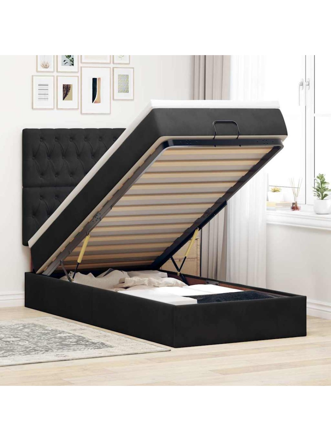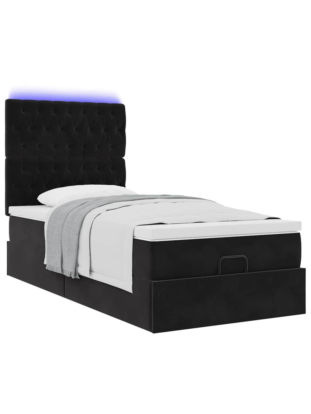 Ottomani voodiraam madratsitega, must, 90x200 cm, samet