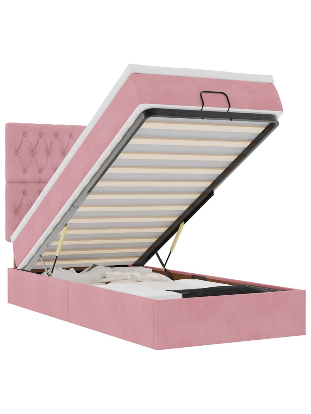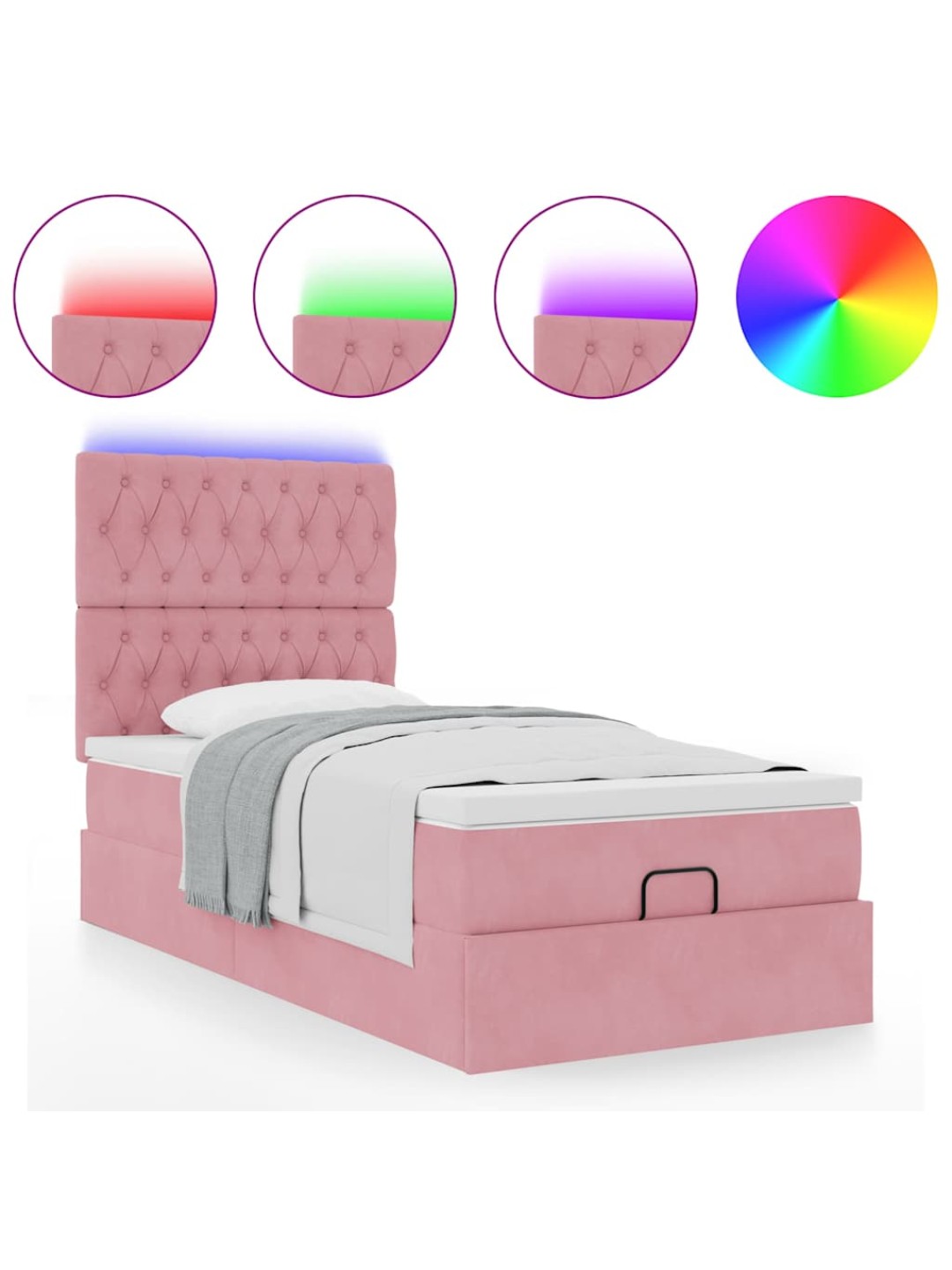 Ottomani voodiraam madratsitega, roosa, 100x200cm, samet