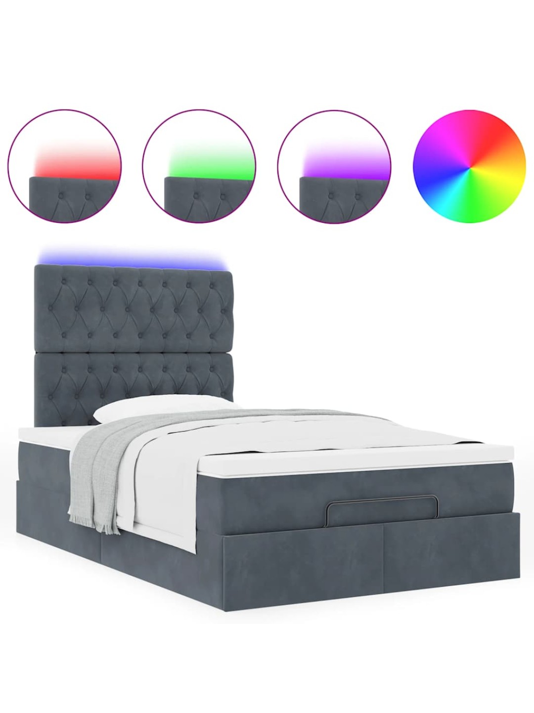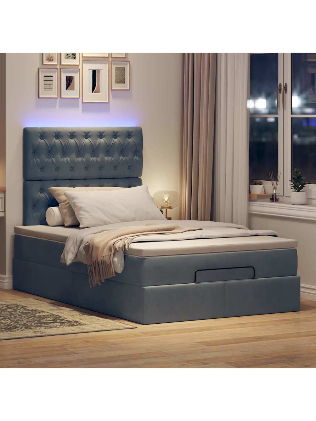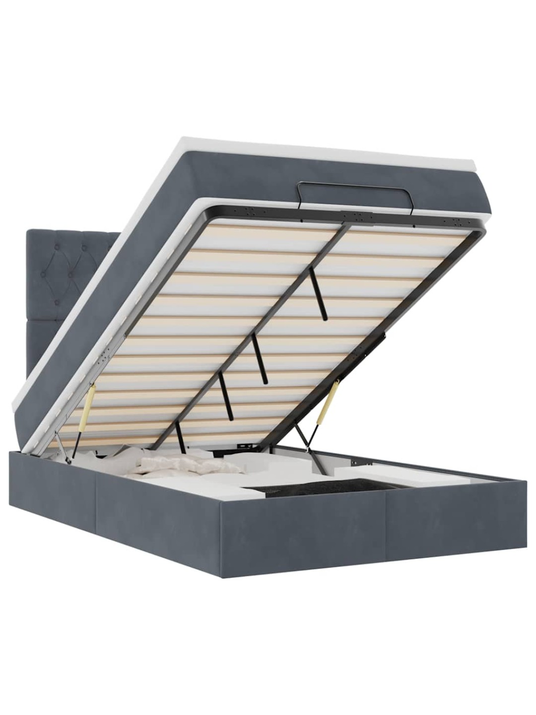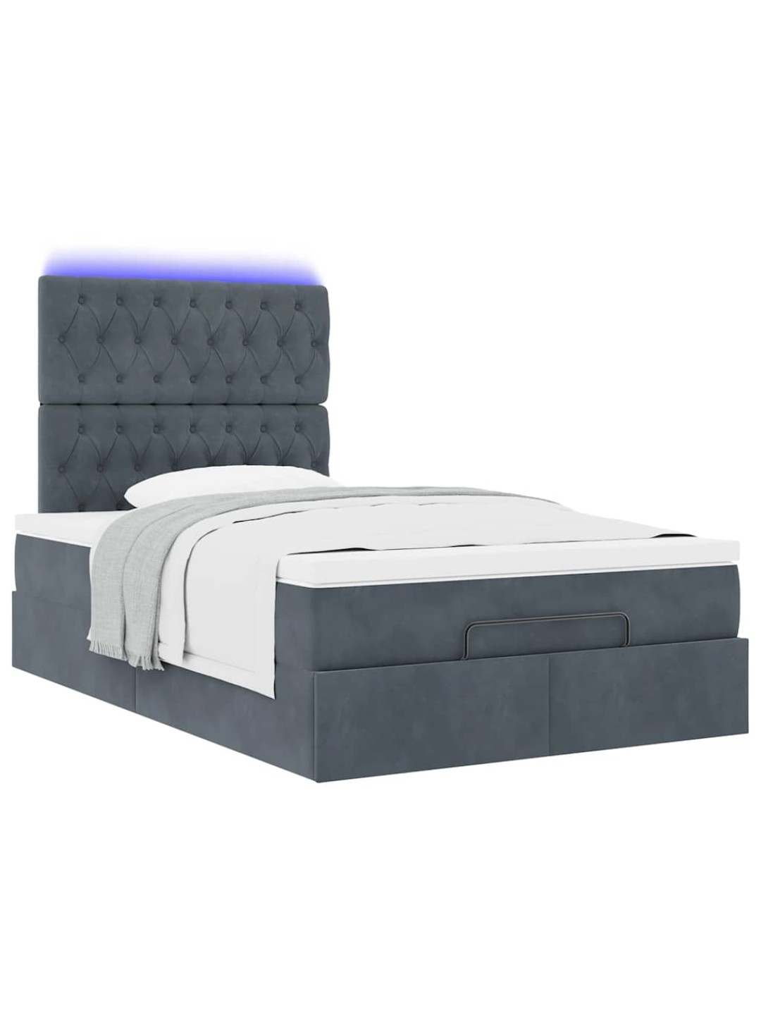 Ottomani voodiraam madratsitega, tumehall, 120x190 cm, samet