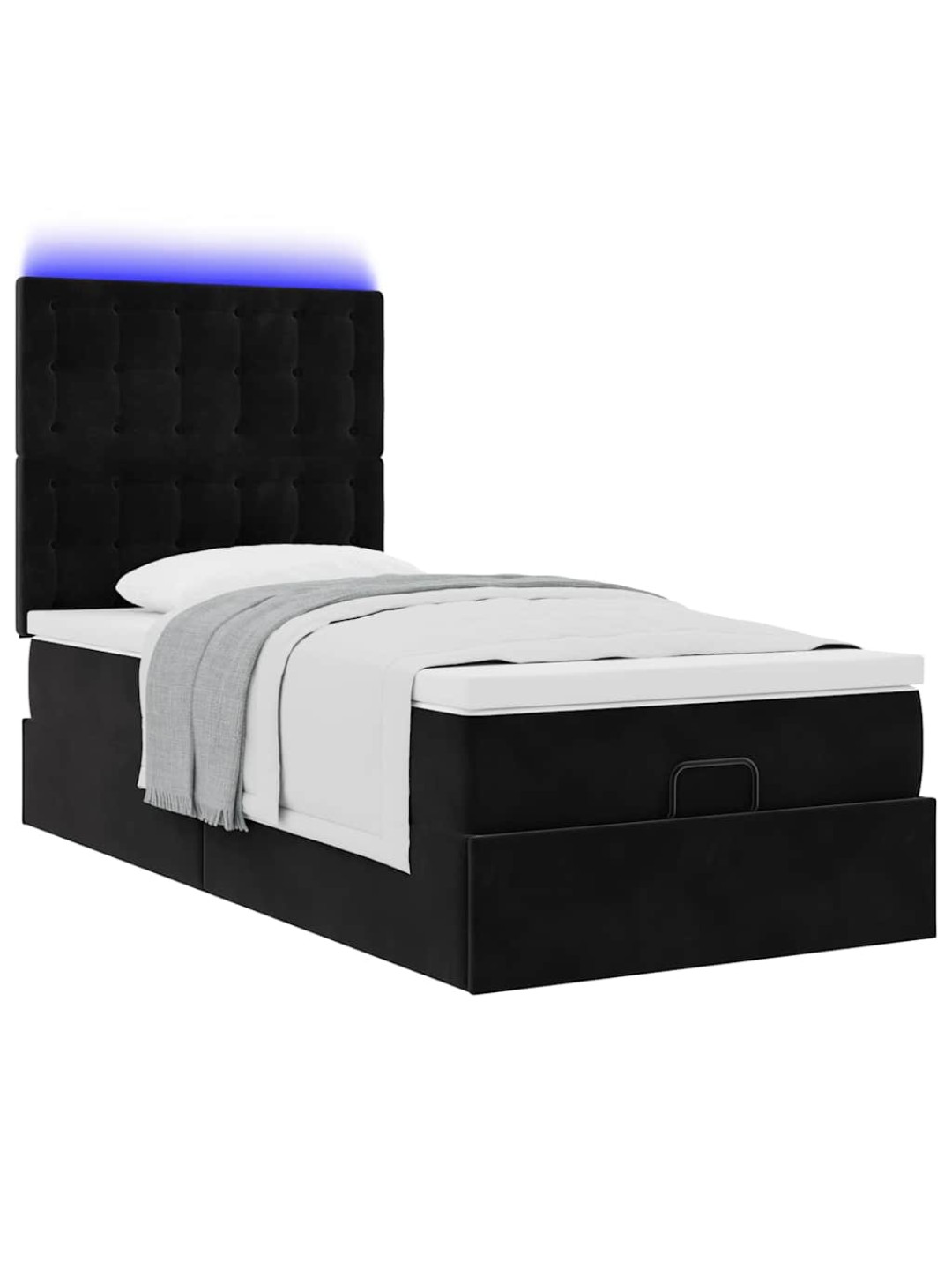 Ottomani voodiraam madratsitega, must, 80x200 cm, samet