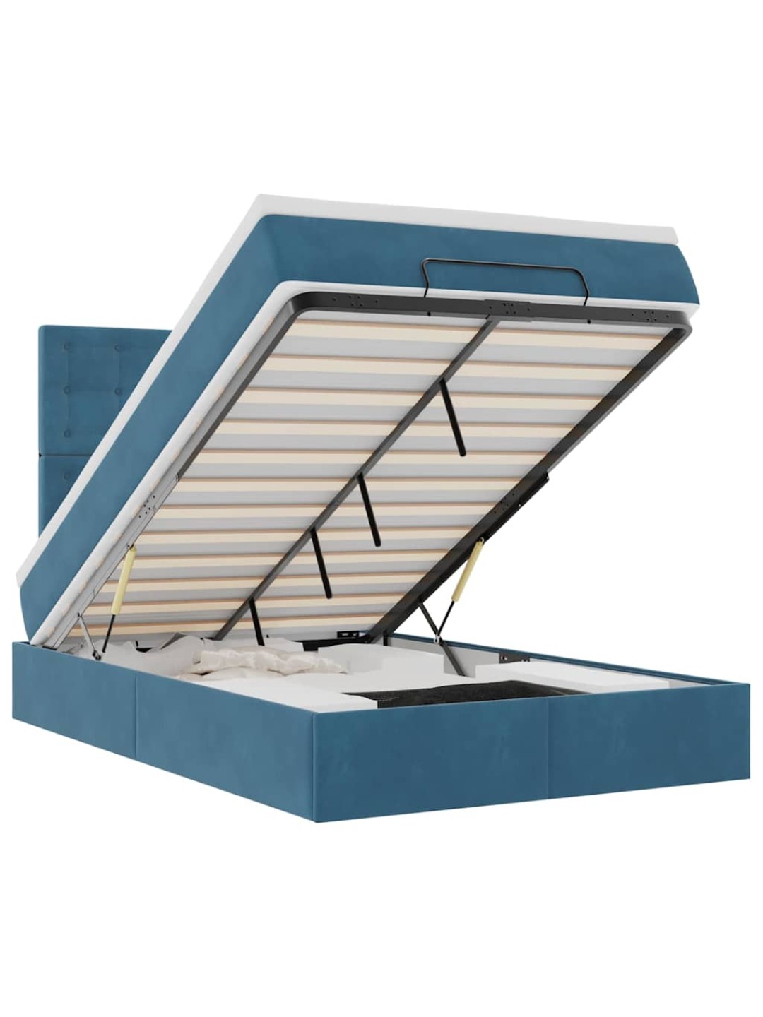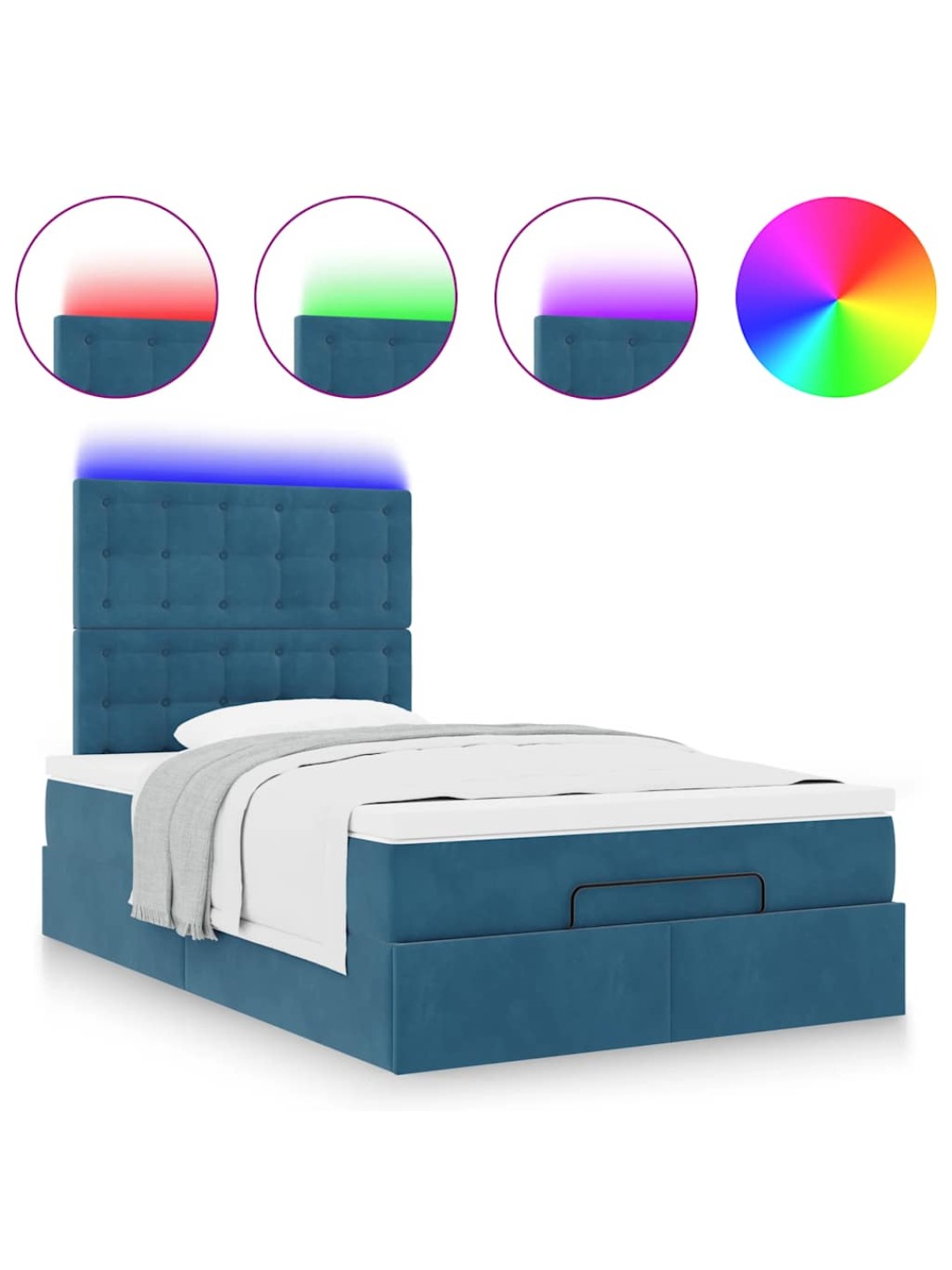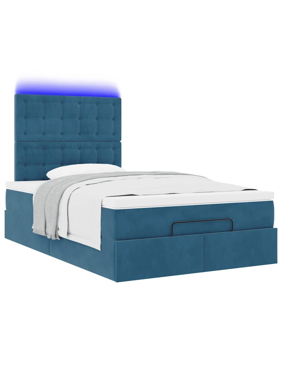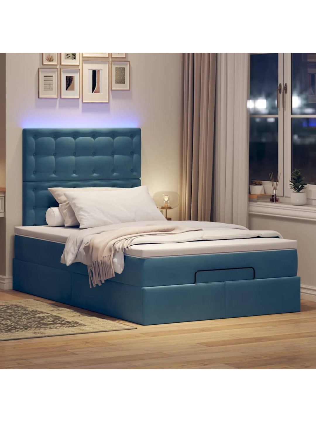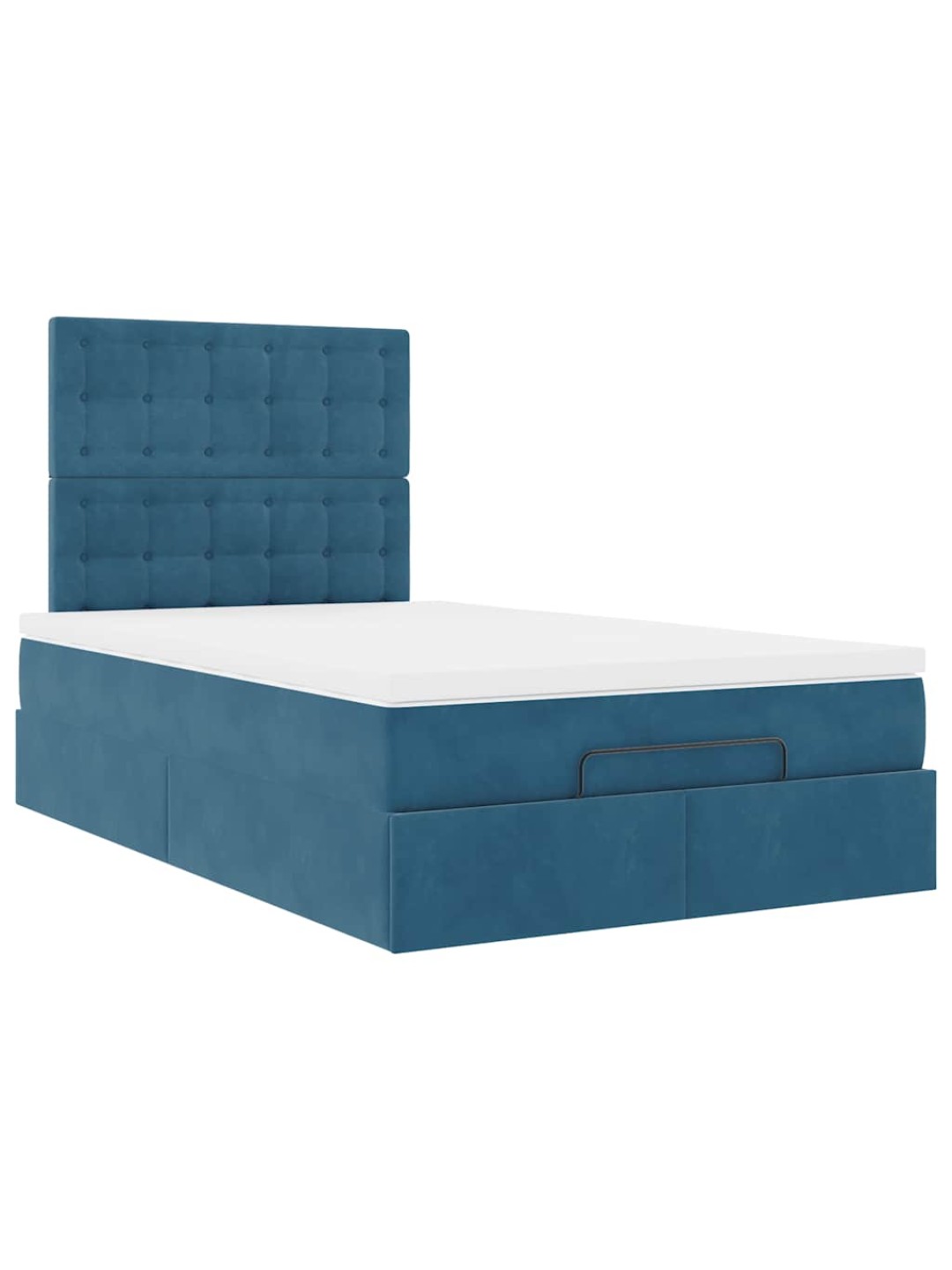 Ottomani voodiraam madratsitega, tumesinine, 120x200 cm, samet