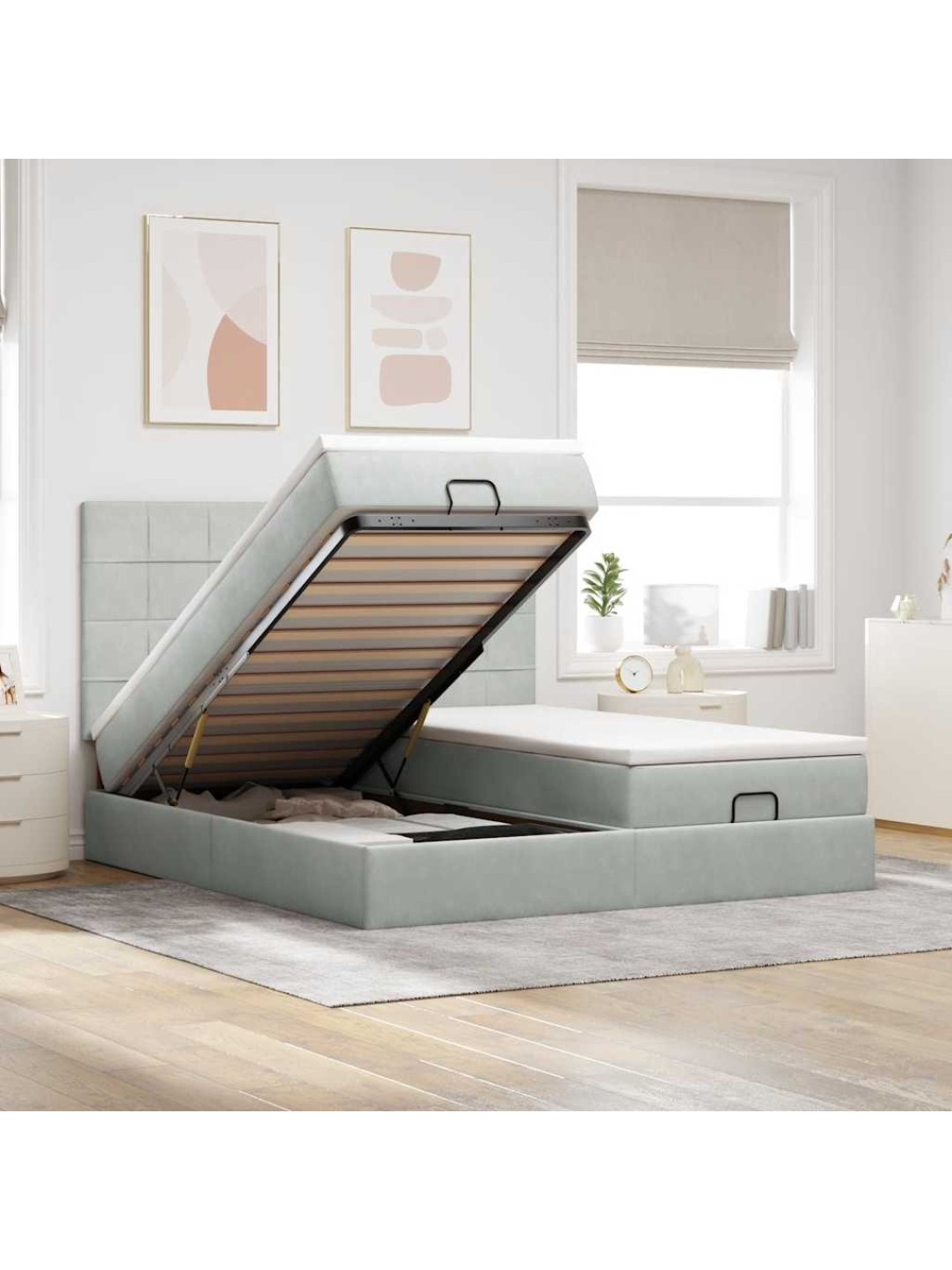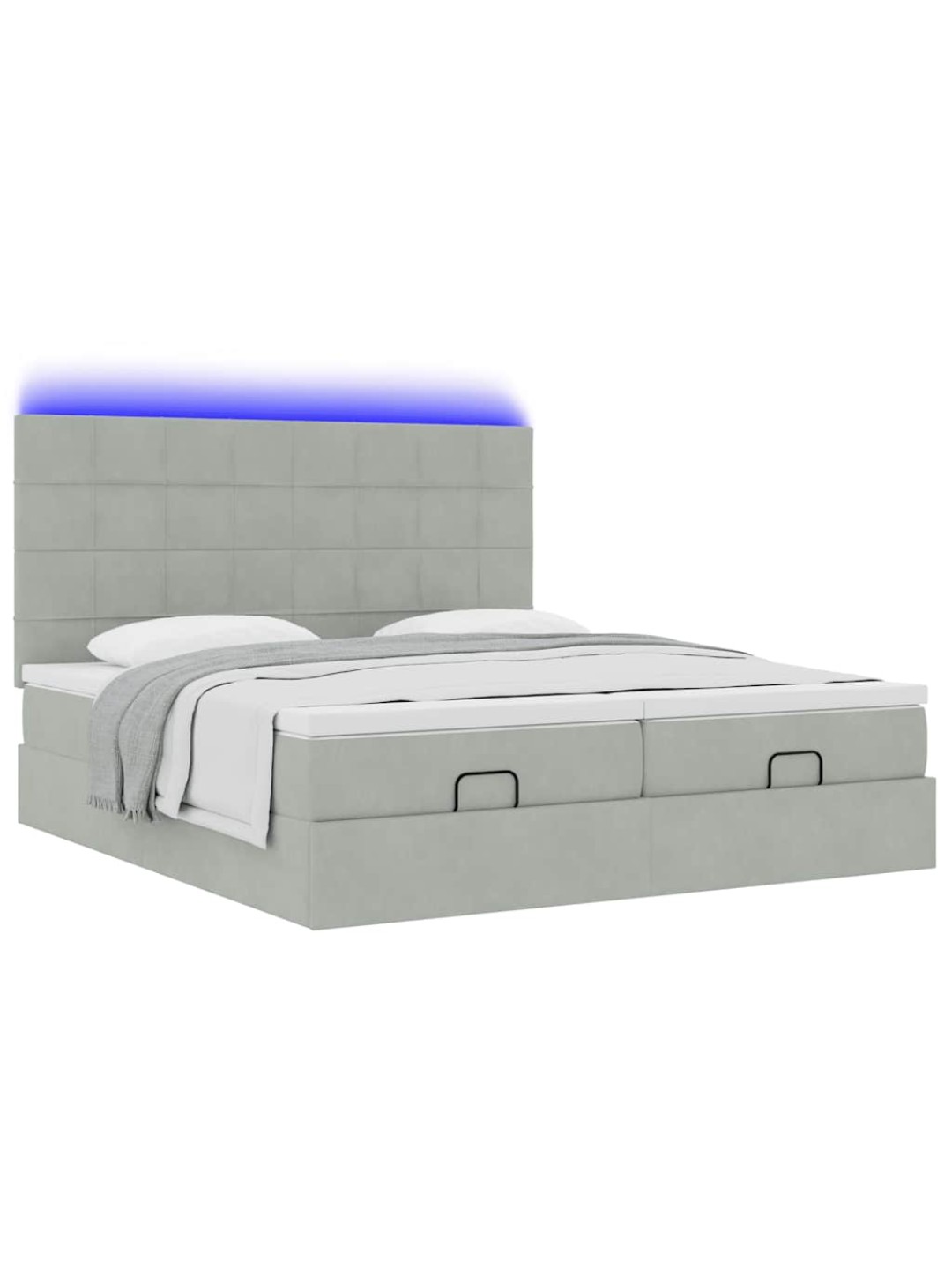 Ottomani voodiraam madratsitega, helehall, 160x200 cm, samet