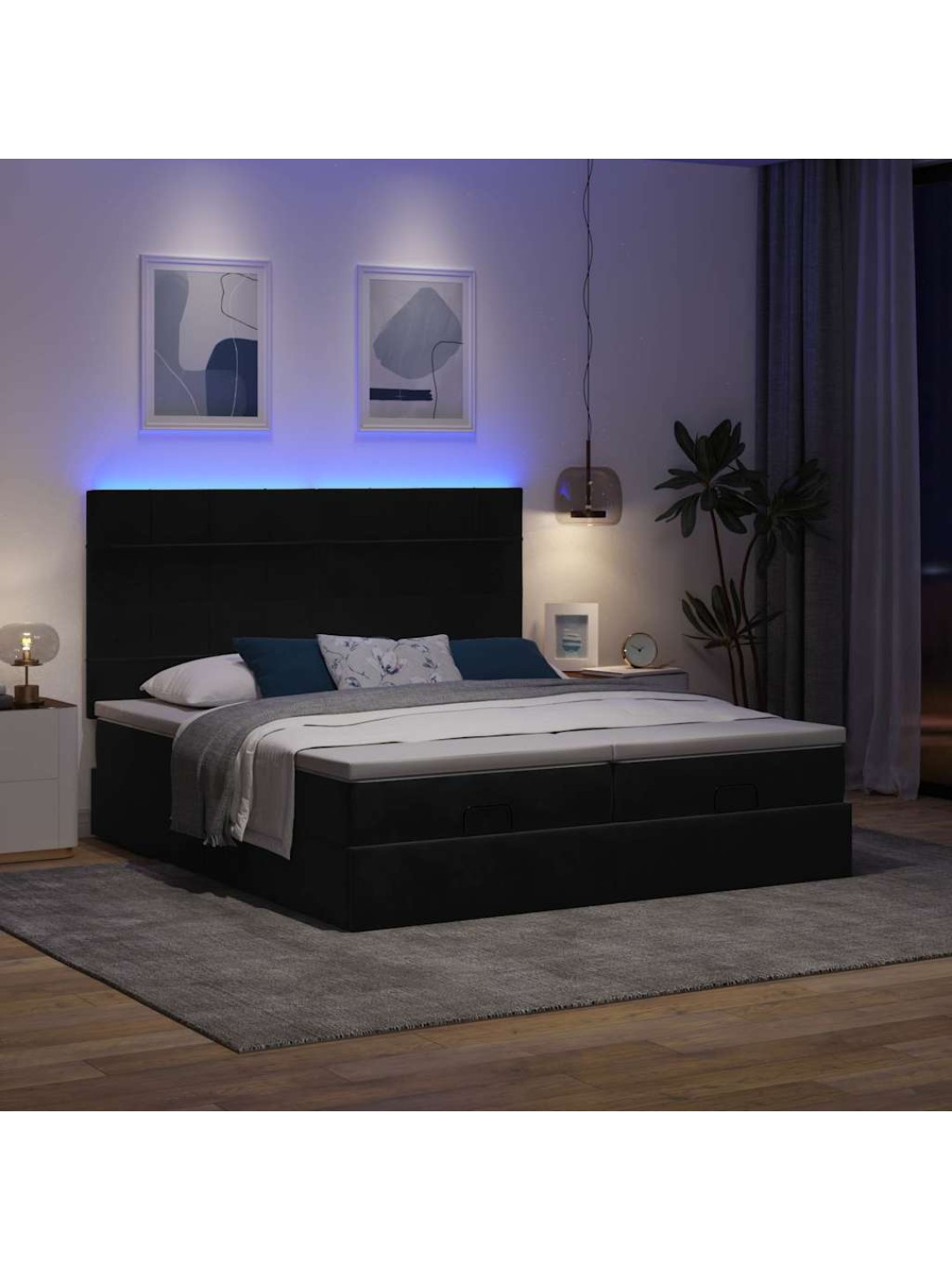 Ottomani voodiraam madratsitega, must, 180x200 cm, samet