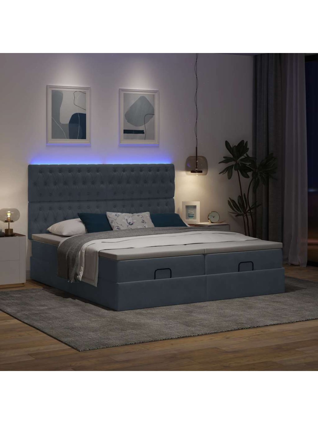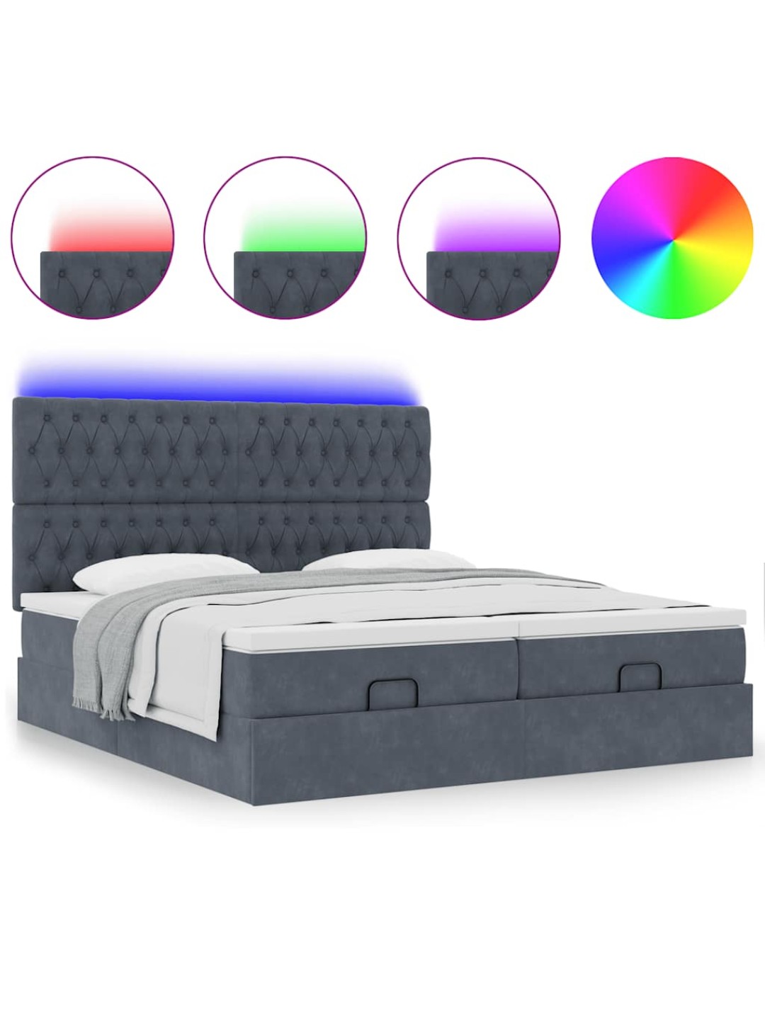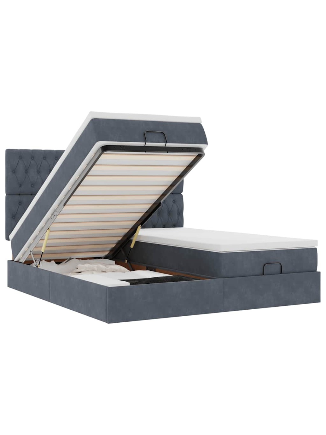Ottomani voodiraam madratsitega, tumehall, 160x200 cm, samet