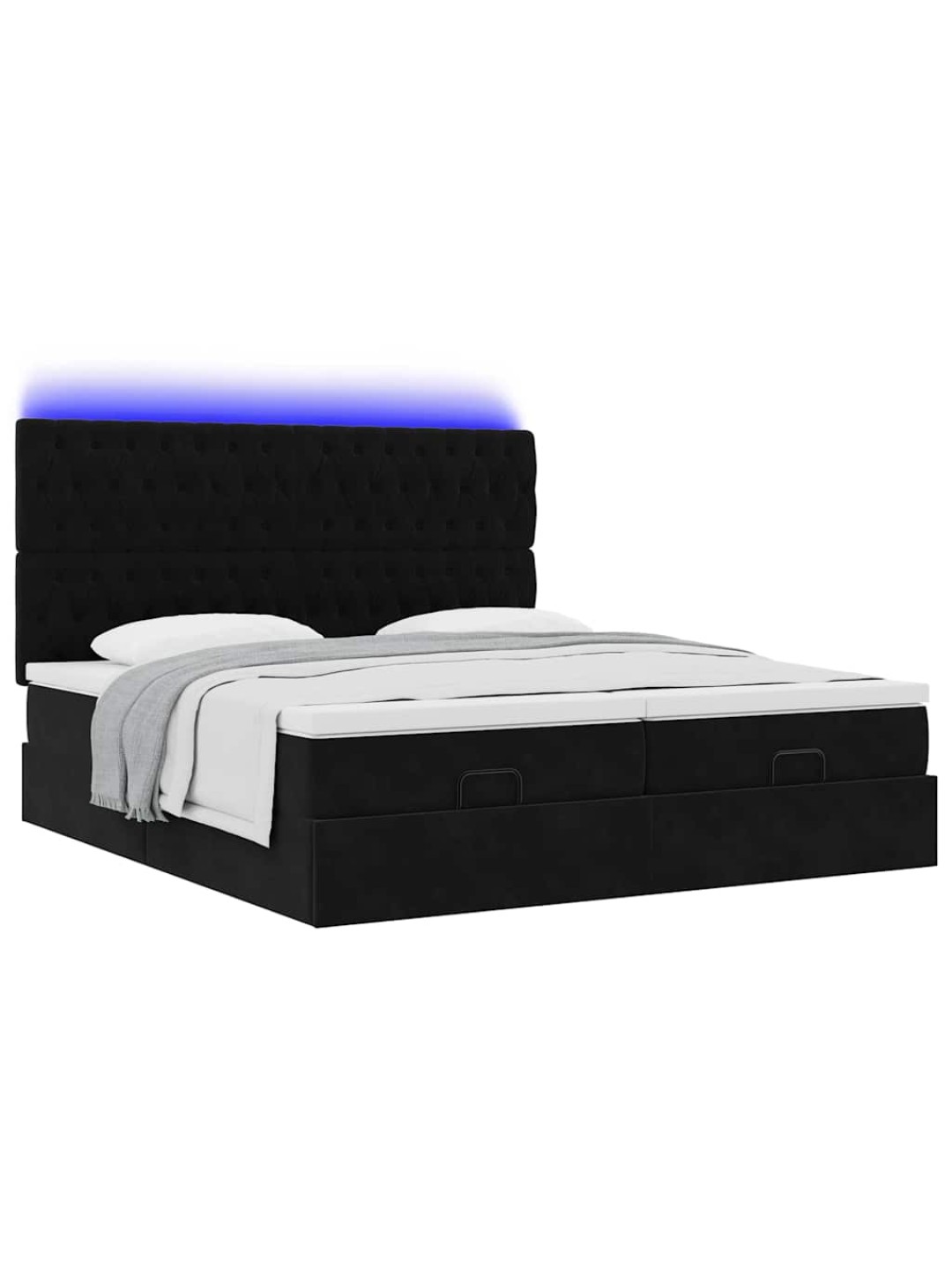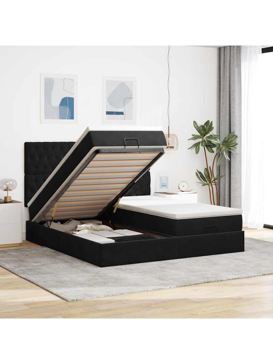 Ottomani voodiraam madratsitega, must, 200x200 cm, samet