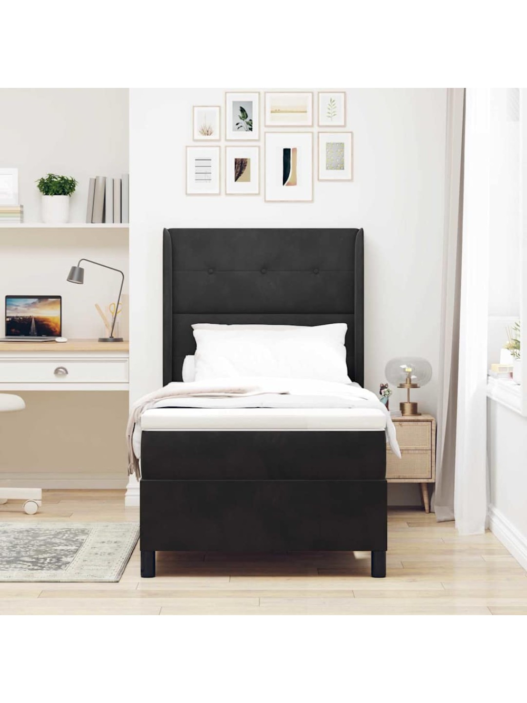 Kontinentaalvoodi peatsiga must 100 x 200 cm samet
