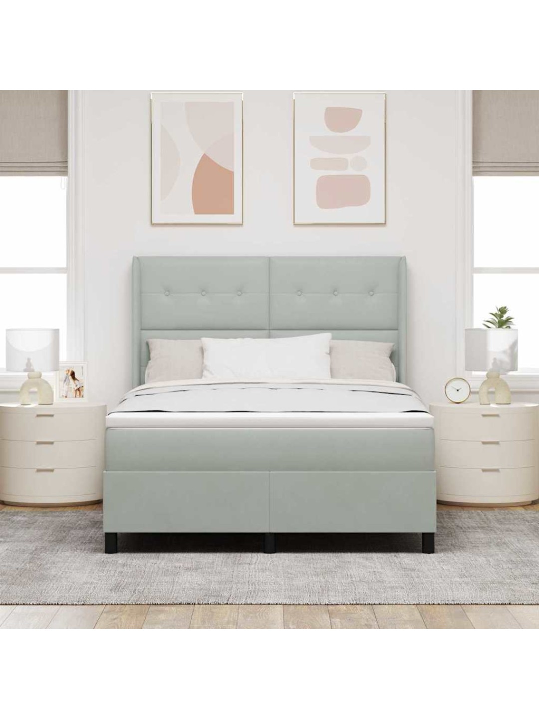 Kontinentaalvoodi peatsiga helehall 140 x 190 cm samet