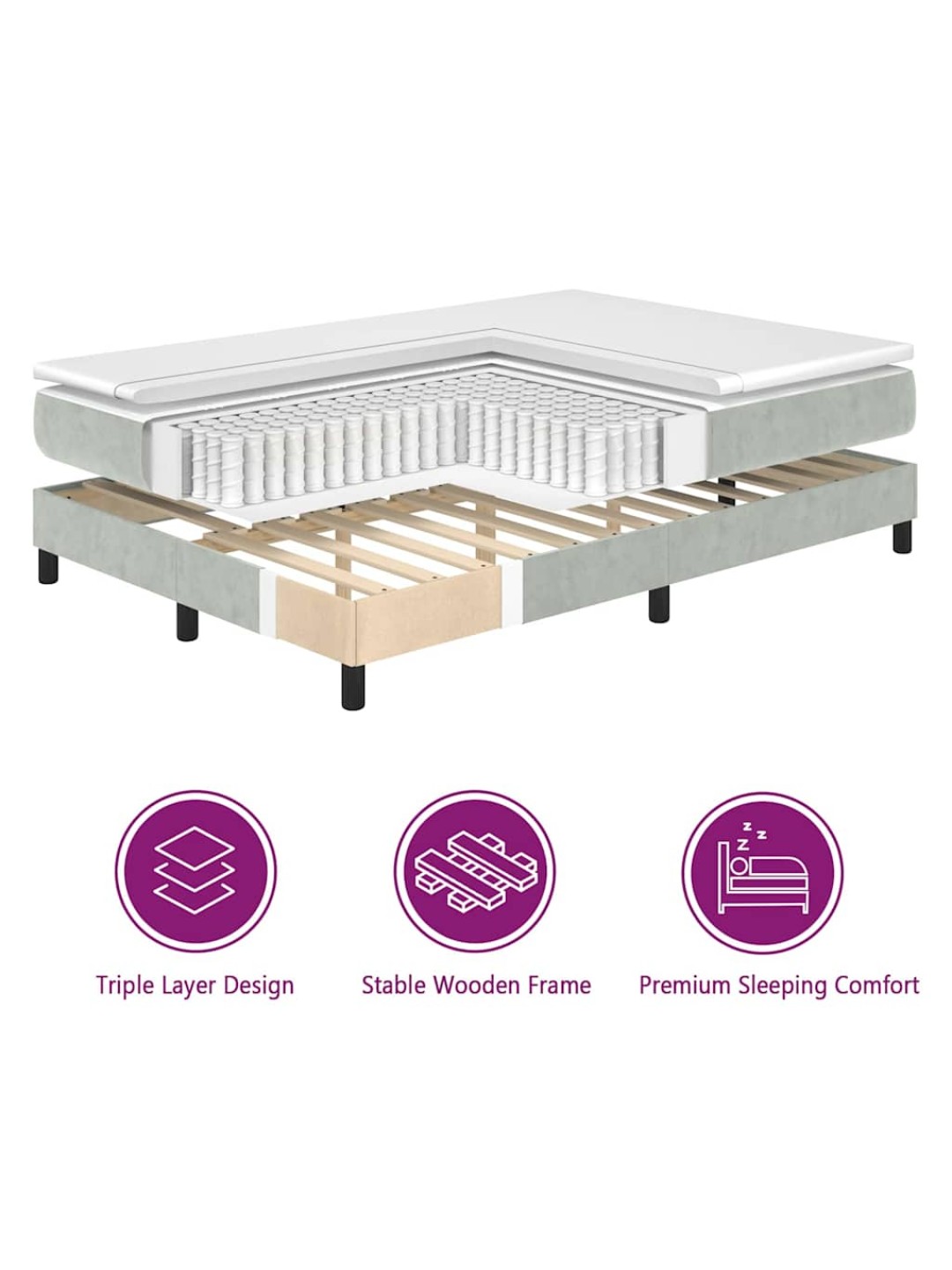 Kontinentaalvoodi peatsiga helehall 90 x 190 cm samet