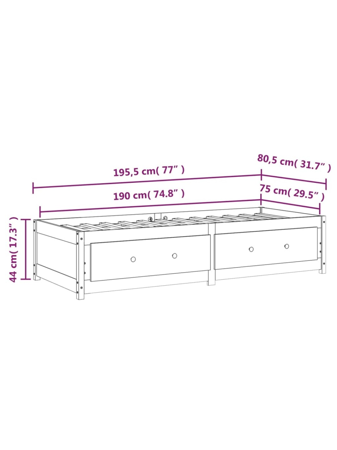 Päevavoodi valge 75x190cm 2ft6 väike ühekordne täispuidust mänd