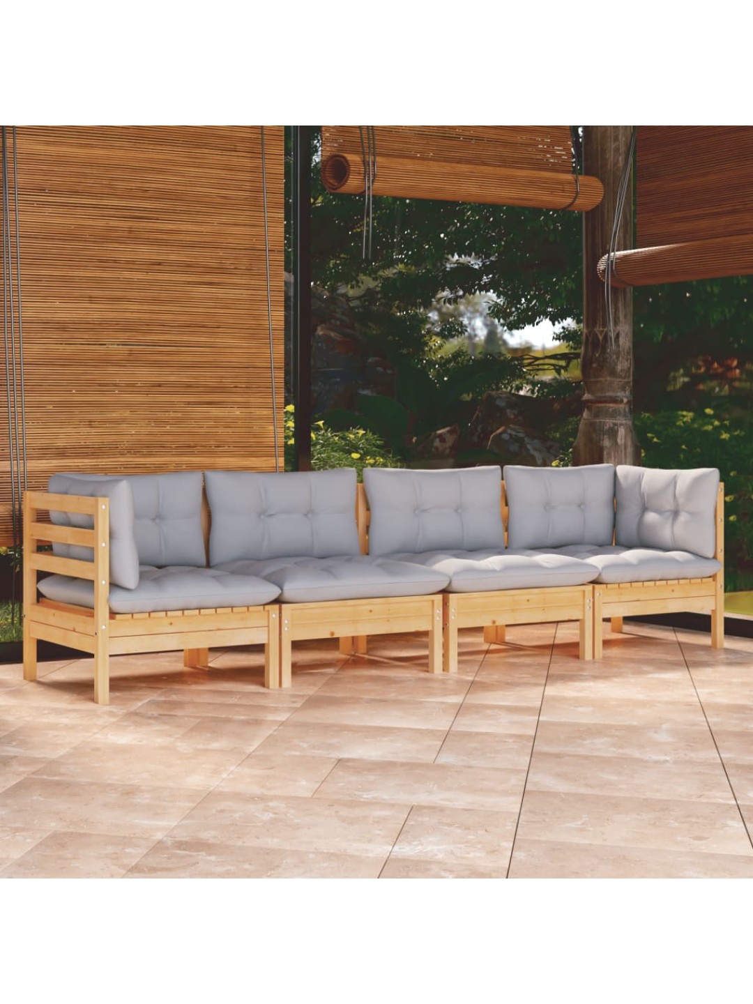 4-osaline aiamööbli komplekt hallide patjadega, männipuit