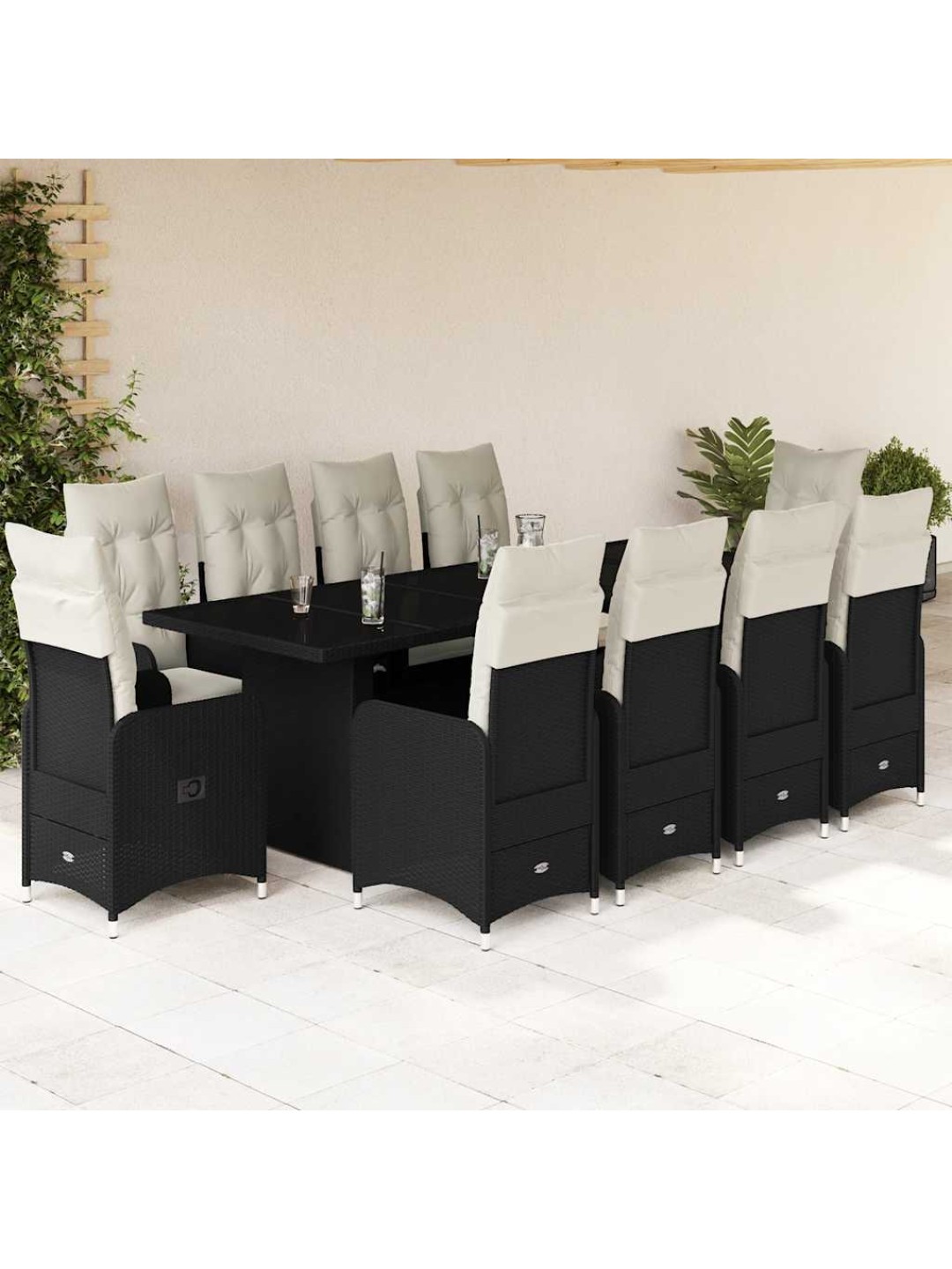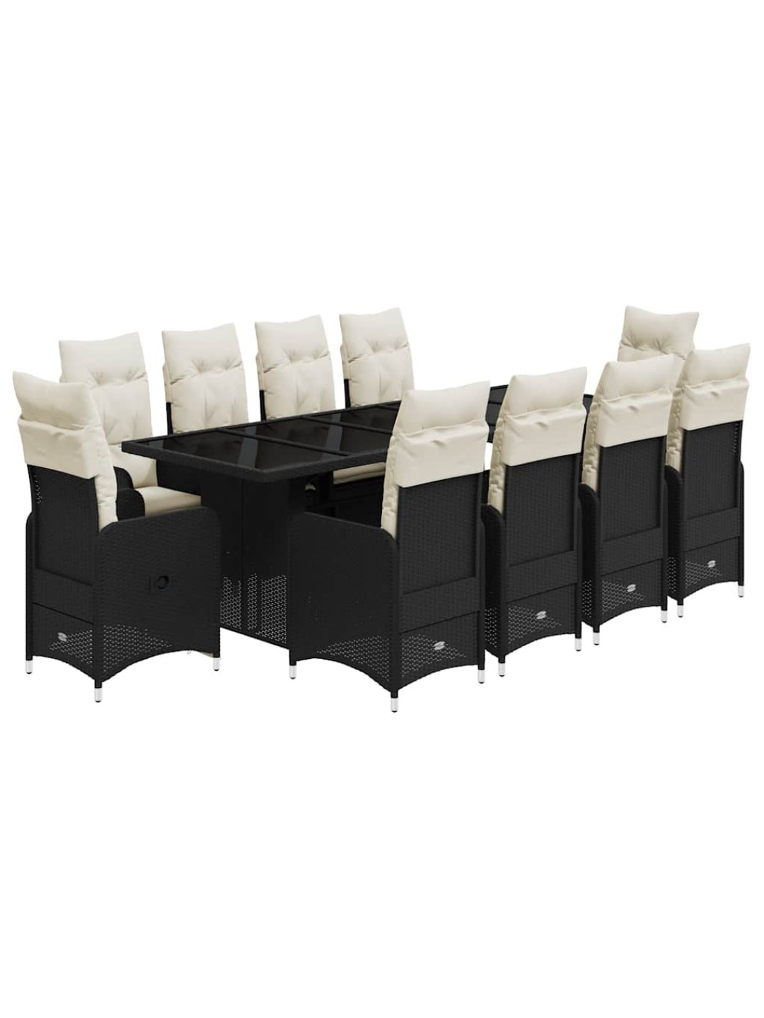 11-osaline aia bistrookomplekt patjadega, must, polürotang