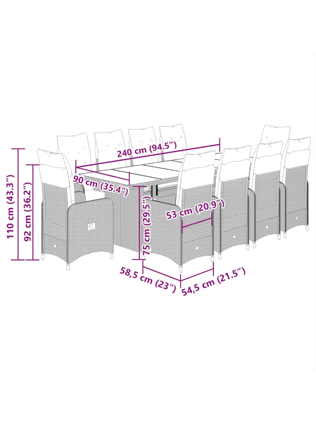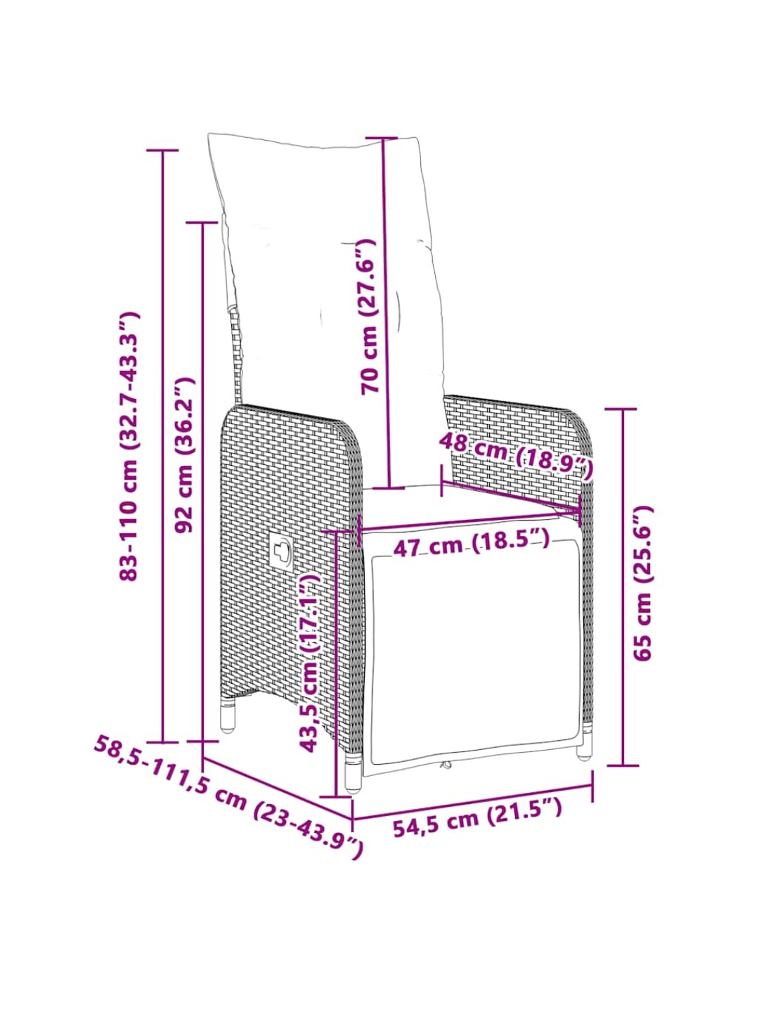 • Mõõtmed istumisasendis: 54,5 x 58,5 x 92 cm (L x S x K)