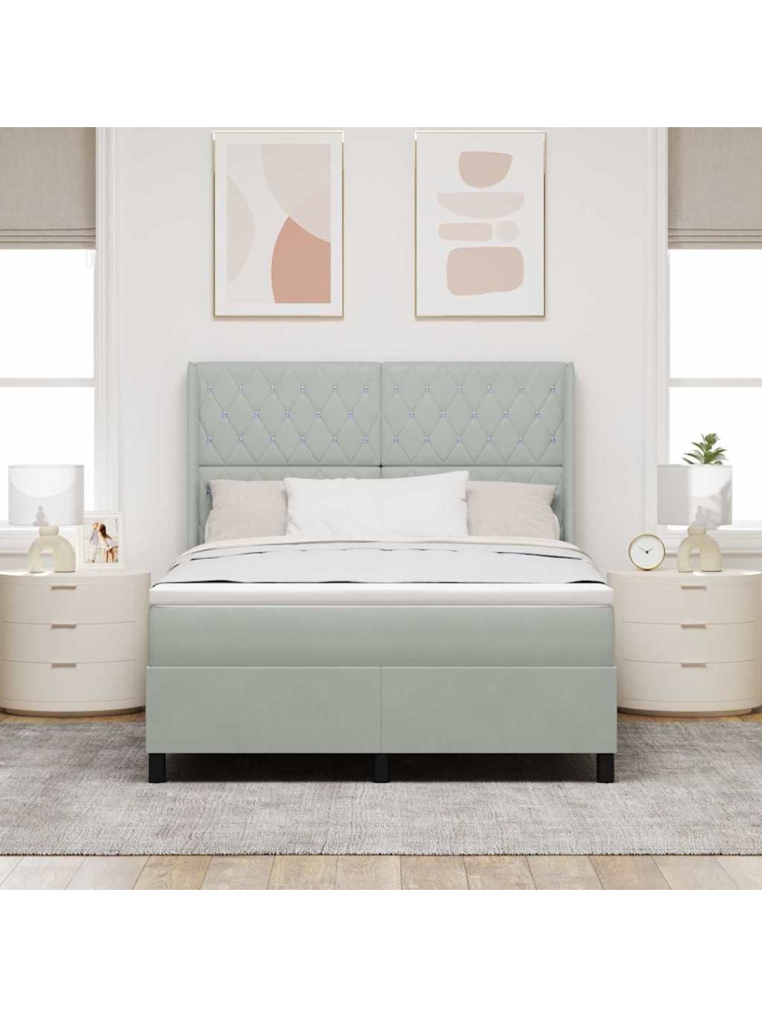 See Box Spring voodi toob kokku välimuse ja mugavuse ning on kindlasti pilkupüüdev igas magamistoas. Pehme sametkattega pealmine osa annab luksusliku ja šikki tunde, kajastades tänapäeva disaini eelistusi. Raam on tehtud tehispuidust, mis on tuntud tugevuse ja stiilsuse poolest. See loob suurepärase tasakaalu elegantsi ja praktilisuse vahel, olles ideaalne neile, kes tahavad oma magamistruumi uuendada, ilma mugavust ohverdamata.